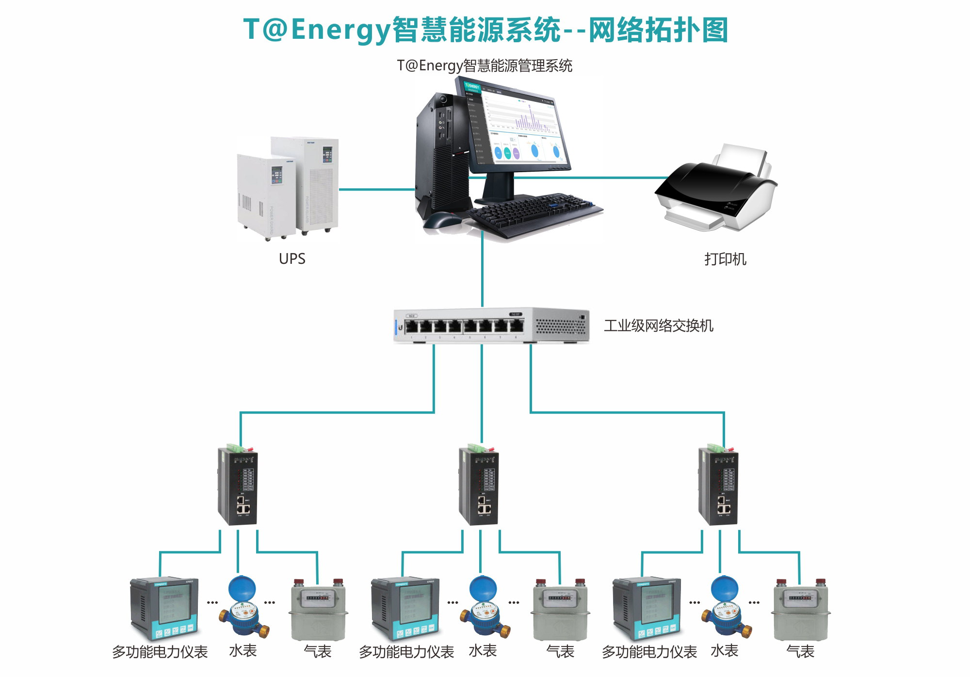 T@ Energy由各類智能采集終端(多功能電力儀表、智能氣表、智能水表、溫濕度傳感器等)、通訊管理機、能耗數據管理軟件系統組成,該系統將酒店內的照明、空調、動力、供熱、供冷、燃氣、給排水等能源使用情況進行采集、監測、分析、管理。