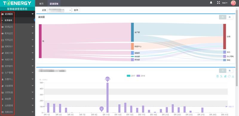 T@ Energy系統根據建筑能源管理的實際需求設定了十大主要功能,分別為:能源看板能源監控、配電監控、視頻監控、能耗分析、報表服務、生產管理、告警中心、能耗統計和設備管理。