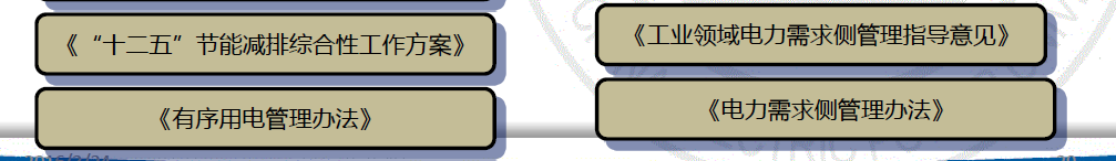 2011年,工信部下發《關于做好當前工業領域電力需求側管理工作的緊急通知》;國家發改委發布《電網企業實施電力需求側管理目標責任考核方案》試行辦法,明確要求電網企業要確保年度節約電量不低于經營區域內上年售電量的千分之三、最大用電負荷的千分之三。