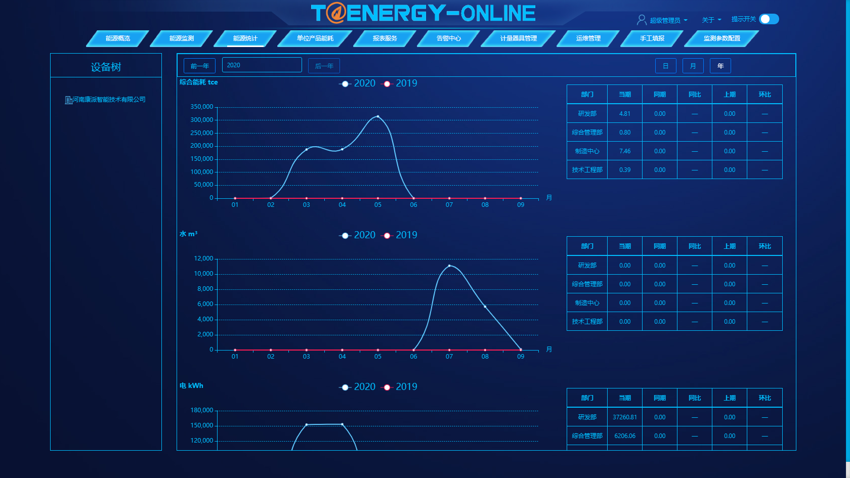 以年、月、日對企業的能源利用情況、線路損耗情況、設備運行情況、運維情況等進行多方面的統計分析,讓用戶多方面了解系統的運行情況,并為用戶提供數據基礎,方便用戶發現設備異常,從而找出改善點,以及針對用能情況挖掘節能潛力。